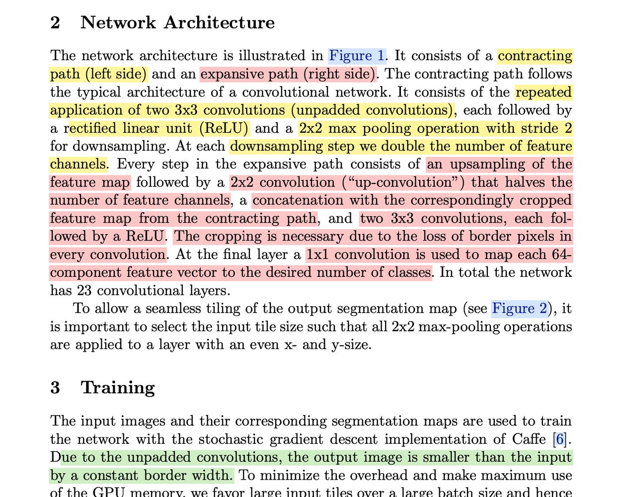 Note that Batch Normalization was first developed one month before this work. Hence this was not introduced in UNet's original architecture. But, nowadays, batch normalization is used after the Convolution layer before ReLu in UNet architecture. We will not use them here, because we are just focused on building the paper's architecture, lest we deviate from the core discussion. We will now implement this architecture from scratch using these building blocks in Pytorch.